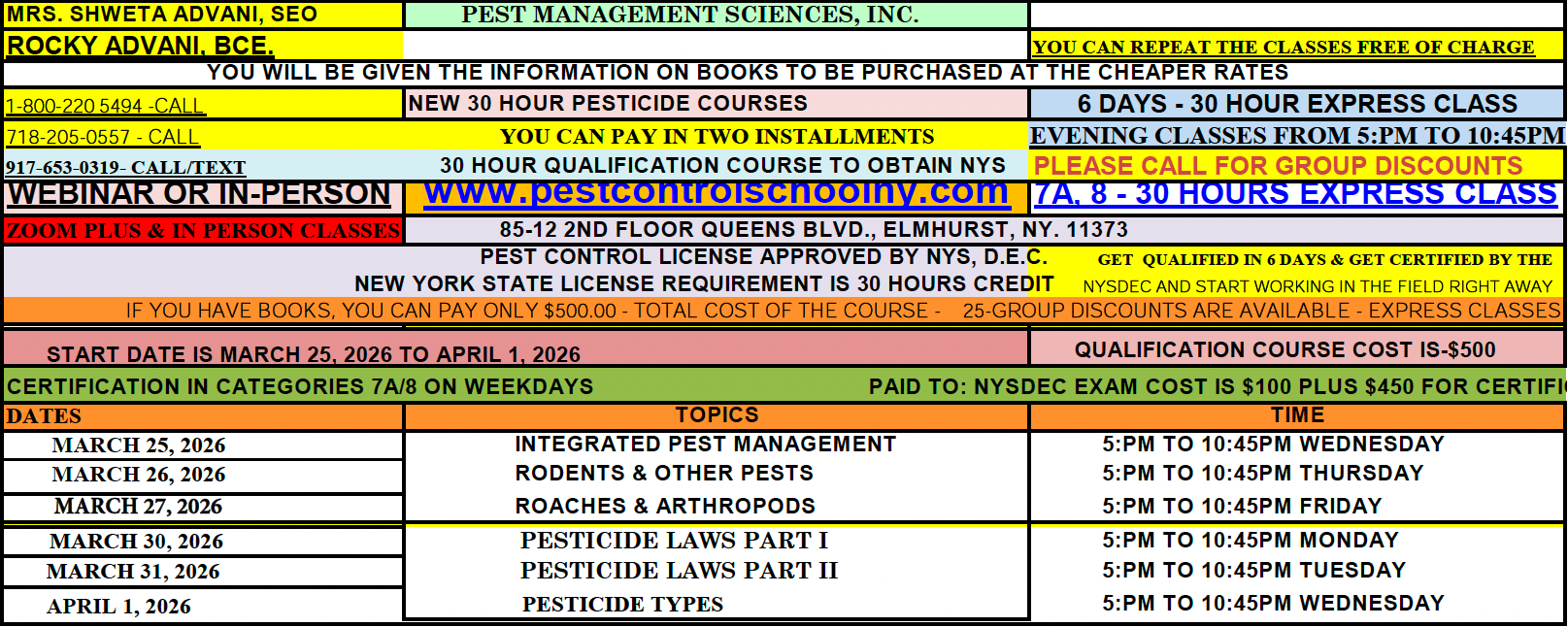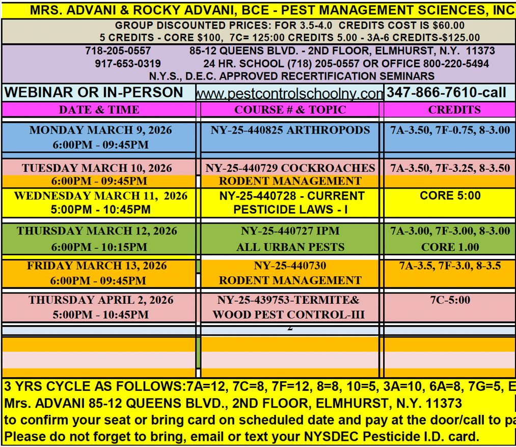7A & 8 30 HOUR PESTICIDE QUALIFICATION, CERTIFICATION CLASSES START FROM MARCH 25 - APRIL 1, 2026.